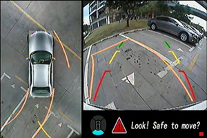 停車(chē)、泊車(chē)難就是不能掌握車(chē)身周?chē)闆r,道可視這款360度全景行車(chē)輔助系統(tǒng)通過(guò)CCD攝像頭,在車(chē)載DVD上為車(chē)主呈現(xiàn)車(chē)身前后左右360度無(wú)死角的視頻演示,輕松掌握該往后或往側(cè)位前進(jìn)多少?方向盤(pán)該如何打。更顯示出倒車(chē)軌跡。
