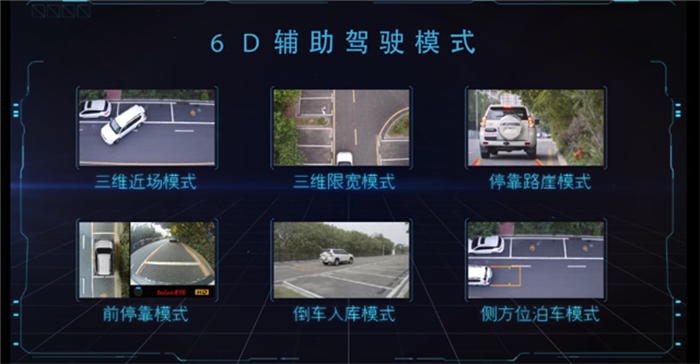 ◆6D輔助駕駛模式。道可視在2018年新增的6D輔助駕駛模式,包含三維近場模式、三維限寬模式、停靠路崖模式、前??磕J?、倒車入庫模式、側(cè)方位泊車模式,徹底屏棄掉市場上的其他3D模式,用簡單方便實用的功能,輔助駕駛者順利通過行車障礙、過限寬、極限??柯费碌榷喾N復(fù)雜多變的行車環(huán)境及道路。