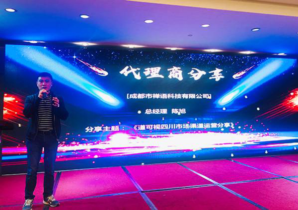 ▲道可視代理商——成都市禪語科技有限公司總經(jīng)理陳旭先生發(fā)表主題演講《道可視四川市場(chǎng)渠道運(yùn)營(yíng)分享》