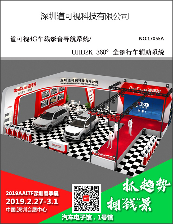 值此辭舊迎新、2019新年開春之際,道可視將攜旗下道可視4G車載影音導(dǎo)航系統(tǒng)、UHD2K 360°全景行車輔助系統(tǒng)等360°全景產(chǎn)品,參展將于2019年2月27日~3月1日,在深圳會(huì)展中心舉辦的2019AAITF深圳春季展?。ㄒ韵潞?jiǎn)稱深圳春季展)