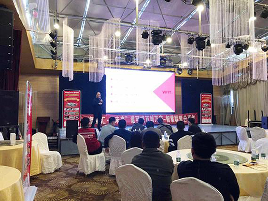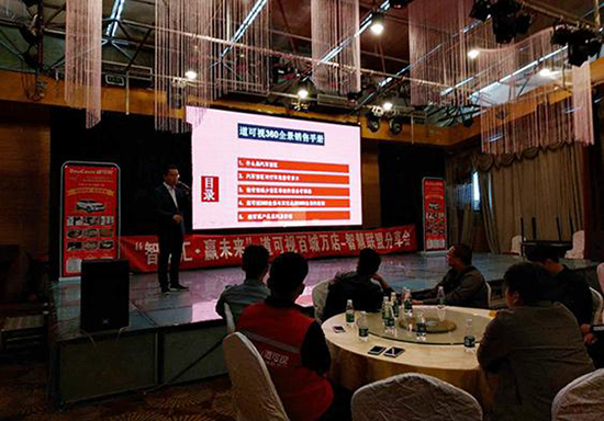 道可視代理商鄭州云游汽車銷售有限公司趙總率先進(jìn)行道可視智慧聯(lián)盟店政策的主題講演,他表示,2019年道可視將在全國各省地級(jí)市舉辦多場招商會(huì),共建立超4000家智慧聯(lián)盟店,他從門店產(chǎn)品的售前準(zhǔn)備、售中執(zhí)行、售后服務(wù)三個(gè)層面進(jìn)行了更細(xì)致化的闡述。
