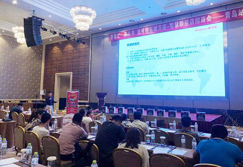 會議直奔主題,就目前火爆的“智慧聯(lián)盟店”,道可視區(qū)域經(jīng)理趙波進(jìn)行了重點(diǎn)介紹,他從市場體系、加盟方案、銷售模式和加盟優(yōu)勢四個維度進(jìn)行了詳細(xì)宣講,引起現(xiàn)場終端門店的極大興趣。