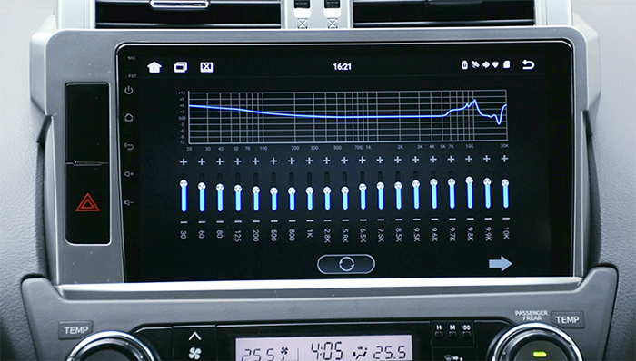 前文提到,道可視S3+音樂車機采用的是前裝車規(guī)級高端版24位DSP模組,它擁有36段EQ調(diào)節(jié),對于懂得調(diào)音的車主而言,它提供了可針對各個音域進行調(diào)節(jié)的專業(yè)操控。
