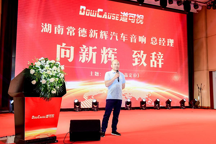 湖南常德新輝汽車音響總經(jīng)理向新輝上臺(tái)發(fā)言,他以自身多年門店運(yùn)營經(jīng)驗(yàn),為嘉賓帶來“門店產(chǎn)品定位”的主題分享。