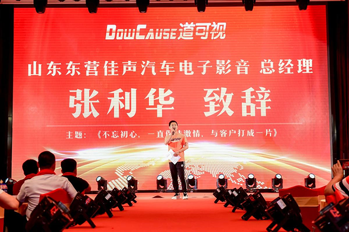 山東東營佳聲汽車電子影音總經(jīng)理張利華同樣作為優(yōu)秀代理商上臺(tái)發(fā)言,帶來“不忘初心,一直保持激情,與客戶打成一片”的主題分享。