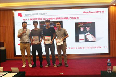 在隨后,廣州麗影豪車匯道可視項(xiàng)目負(fù)責(zé)人粟庚泉也上臺進(jìn)一步表示,為了降低門店銷售門檻,同時(shí)也給消費(fèi)者帶來更專業(yè)的安裝服務(wù),將由當(dāng)?shù)爻鞘羞\(yùn)營商對產(chǎn)品進(jìn)行安裝服務(wù),在智慧聯(lián)盟店內(nèi)完成安裝。而當(dāng)銷售完成后,聯(lián)盟店登陸官方質(zhì)??ㄏ到y(tǒng)生成電子質(zhì)???/span>,輕松享受全國聯(lián)保。