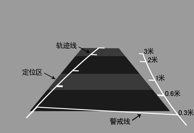 定位區(qū):當(dāng)車輪方向打正時,車身將會經(jīng)過的位置,用于泊車位置參考。