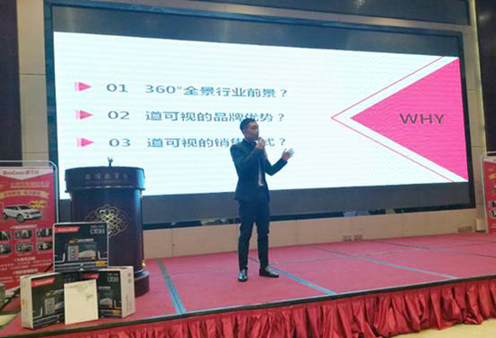 道可視廣東代理、廣州御卡汽車用品有限公司總經(jīng)理陳彥豪先生在會(huì)議中,帶來(lái)了“2019年,我們?cè)趺磼赍X?”的主題宣講。他表示360°全景行車輔助系統(tǒng)已經(jīng)成為了汽車后裝電子行業(yè)的發(fā)展趨勢(shì),且安裝車型幾乎覆蓋所有車型,市場(chǎng)潛力巨大。