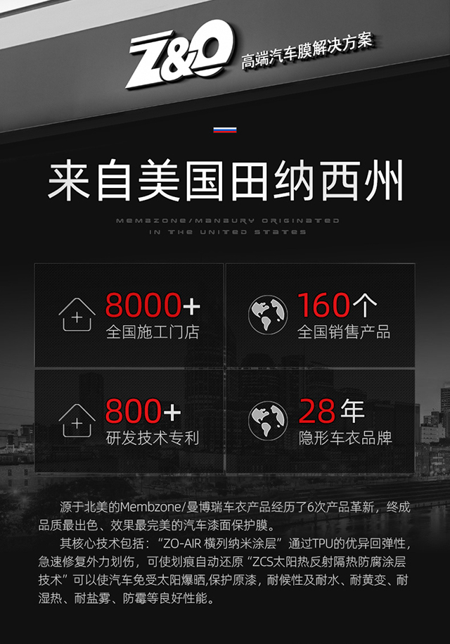 Z&O品牌隱形車衣的“完美”理念,其底氣來(lái)自于與美國(guó)Membzone公司的淵源與深度合作。